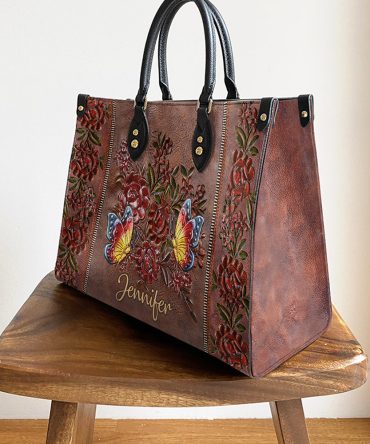 Personalized Butterfly Gorgeous Flower Leather Bag, Women’s Pu Leather Bag, Best Mother’s Day Gifts