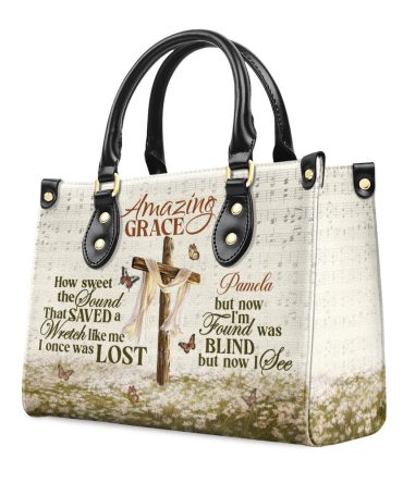 Personalized Christian Leather Bag, Amazing Grace I’m Found Was Blind But Now I See Leather Handbag, Faith Handbag