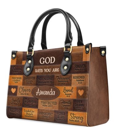 Personalized Christian Leather Bag, God Says I Am Leather Handbag Gift For Her, Faith Handbag