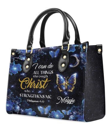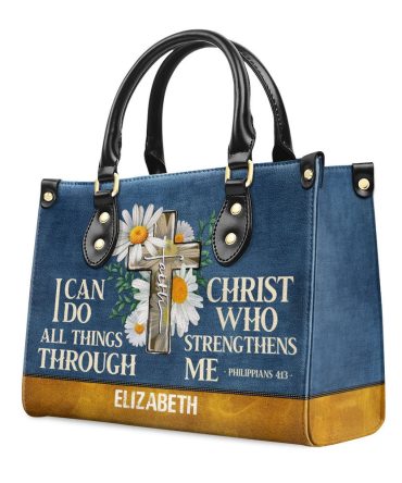 Personalized Christian Leather Bag, I Can Do All Things Through Christ – Pretty Personalized Leather Handbag, Faith Handbag