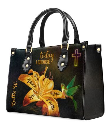 Personalized Christian Leather Bag, Today I Choose Joy – Beautiful Personalized Cross Leather Handbag, Faith Handbag