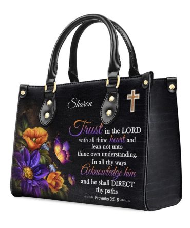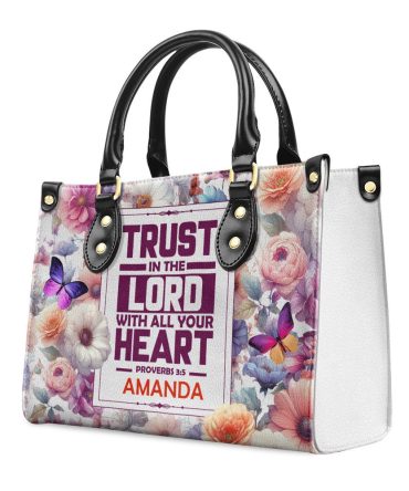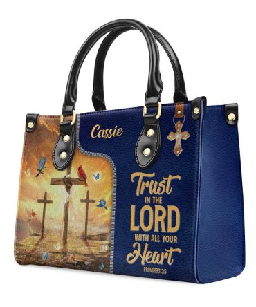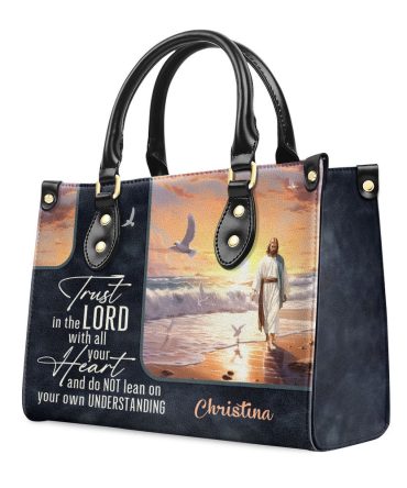 Personalized Christian Leather Bag, Trust In The Lord With All Your Heart – Awesome Personalized Leather Handbag, Faith Handbag