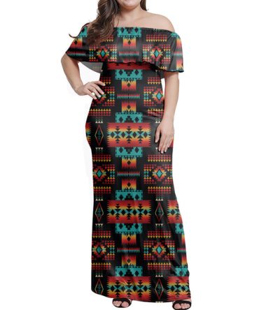 Black Native Tribes Pattern Native American Off Shoulder Dress
