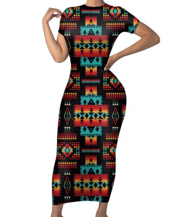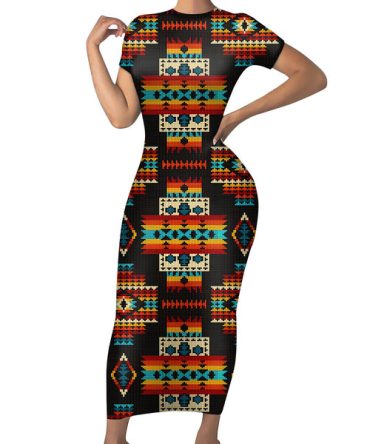 Black Native Tribes Pattern Native American Short-Sleeved Body Dress