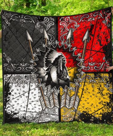 Ethnic Red Gray Pattern Native American Premium Quilt