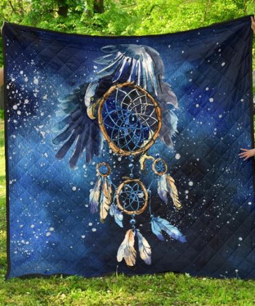 Blue Galaxy Dreamcatcher Native American Premium Quilt