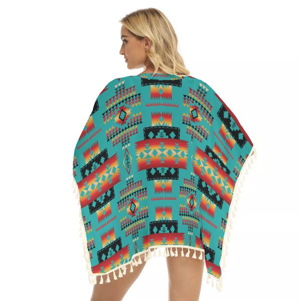 Be the first to review “Blue Native Tribes Pattern Square Fringed Shawl”