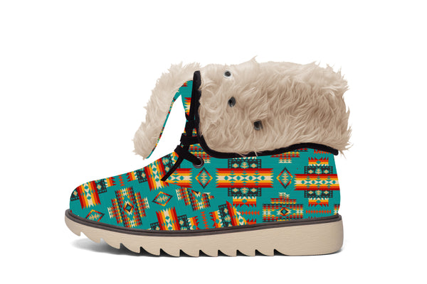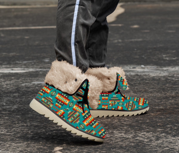 Comfortable, easy to slip on and off, these stylish Blue Pattern Native Faux Fur Leather Boots are made of soft faux fur and premium leather. The sole is made of rubber, while the upper is made with high quality suede.
