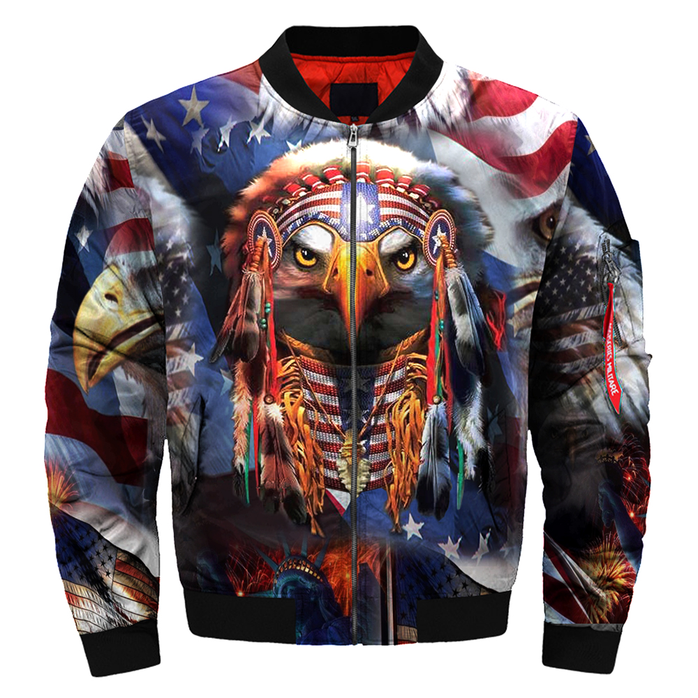 Wear your Cool Native Eagle Bomber Jacket with pride and honour, made from a mixture of cotton, polyester and spandex, this jacket is as practical as it is stylish. Beautiful in design and bold in colour, simply layer over a t-shirt or shirt for a statement look that can be worn anywhere.
