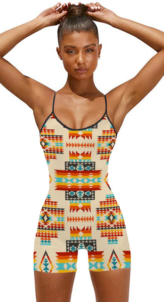 Be the first to review “Cream Pattern Native Basic Fitted Unitard Romper”