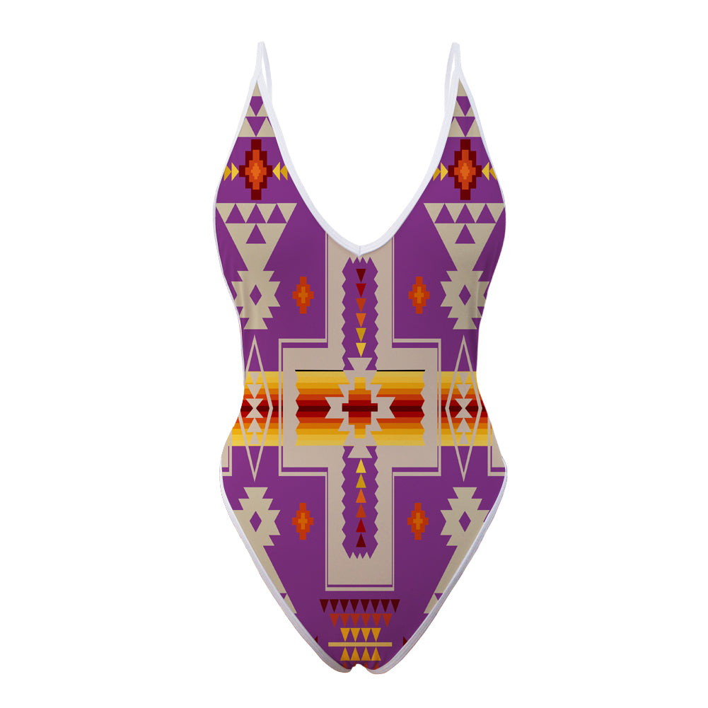 Light Purple Tribe Design Native American Women?s One Piece High Cut Swimsuit