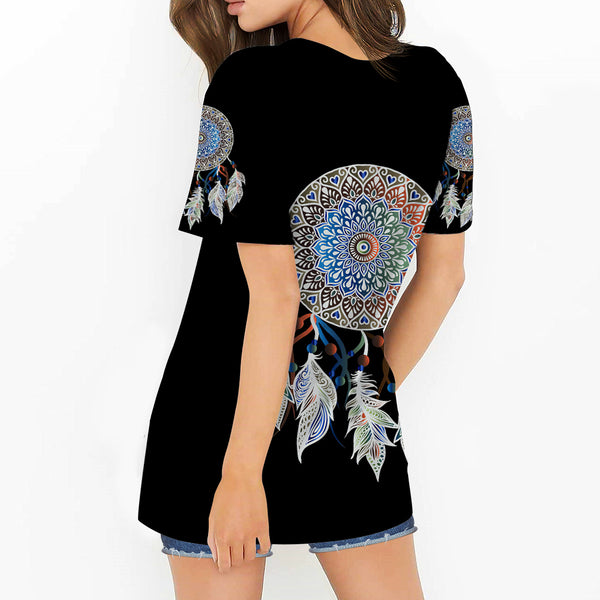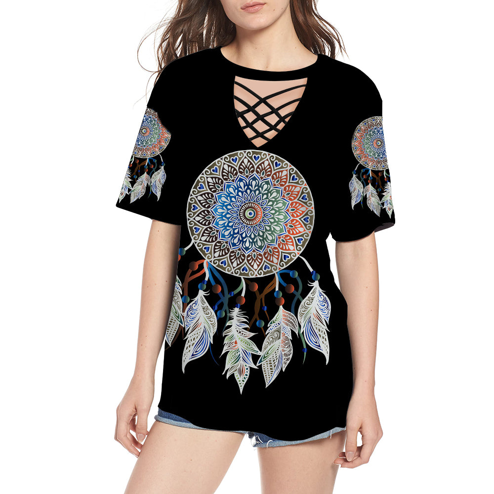 Mandala Dream Catcher Round Neck Hollow Out Tshirt