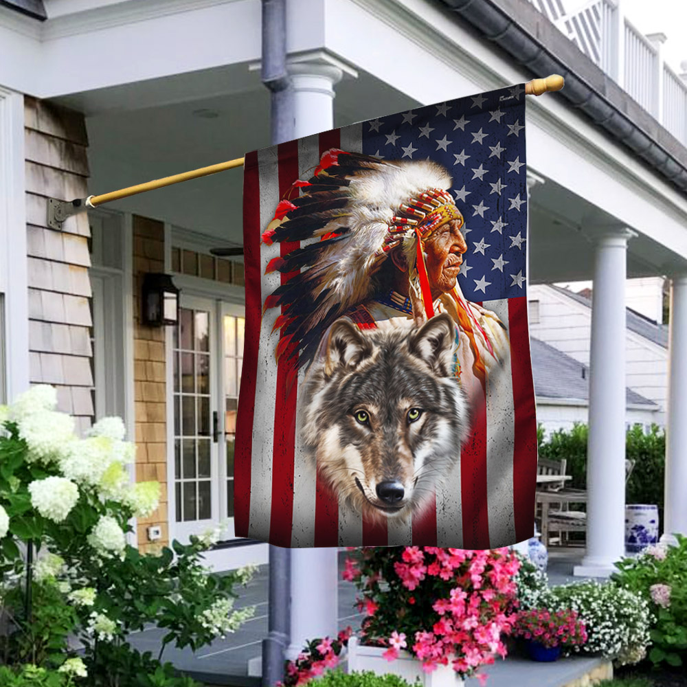 Be the first to review “Native American With Wolf Flag”