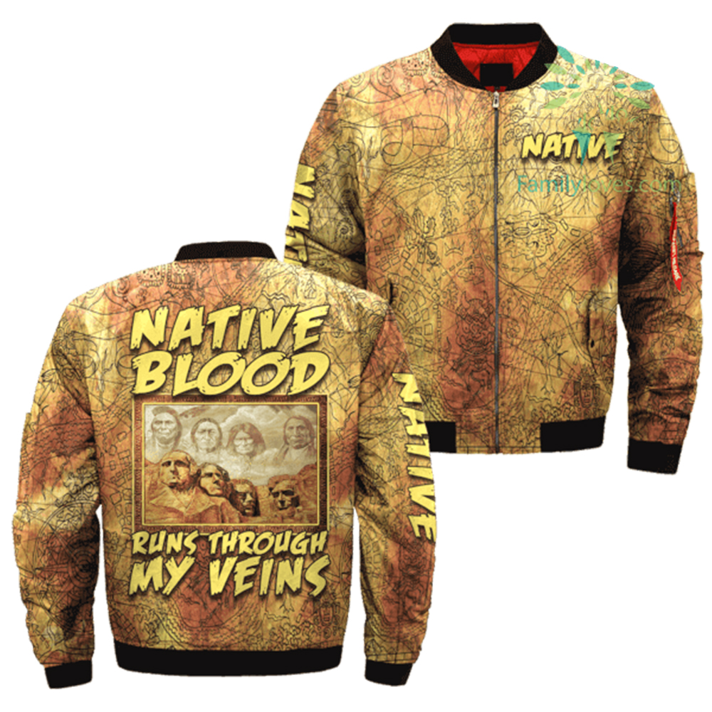 Be the first to review “Native Blood Runs Through My Veins Native Bomber Jacket”