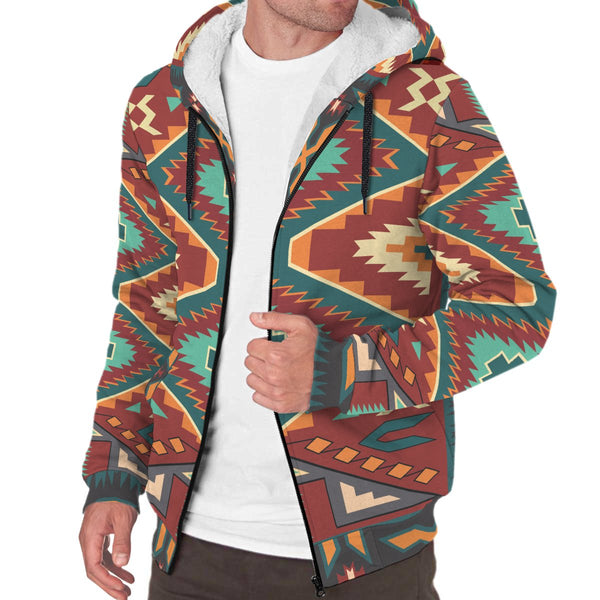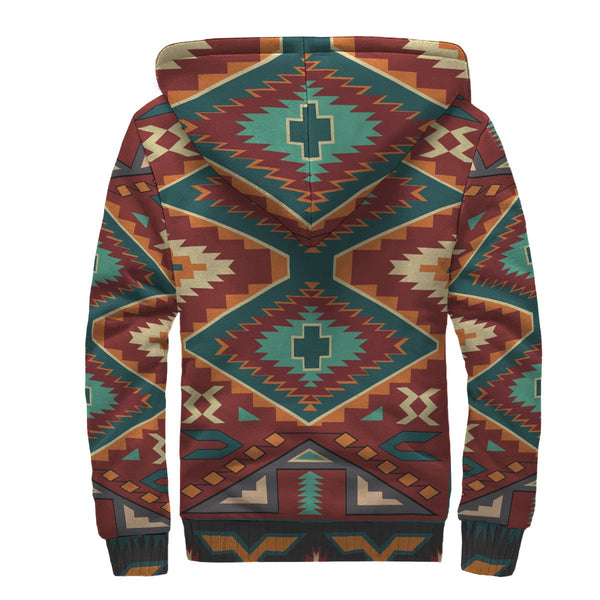 Native Red Yellow Pattern Native American AOP Sherpa Hoodie is a perfect choice for the upcoming cold season. The sherpa inside gives you a warm feeling, and the pattern on the outside looks great.