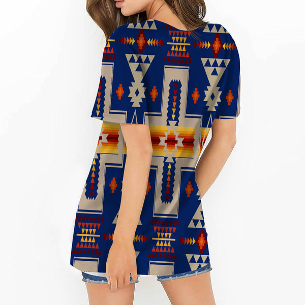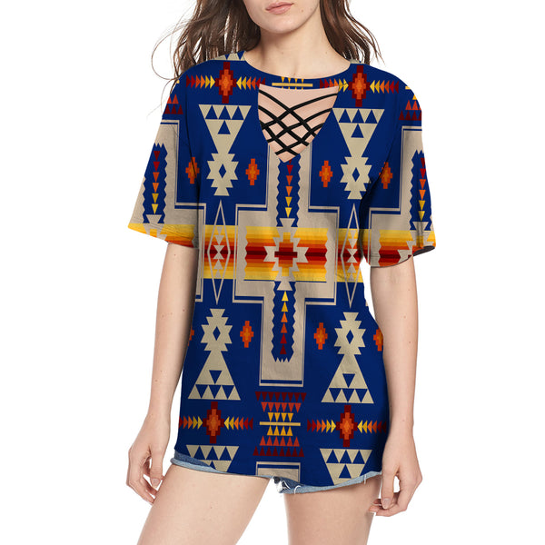 Navy Tribe Design Native American Round Neck Hollow Out Tshirt