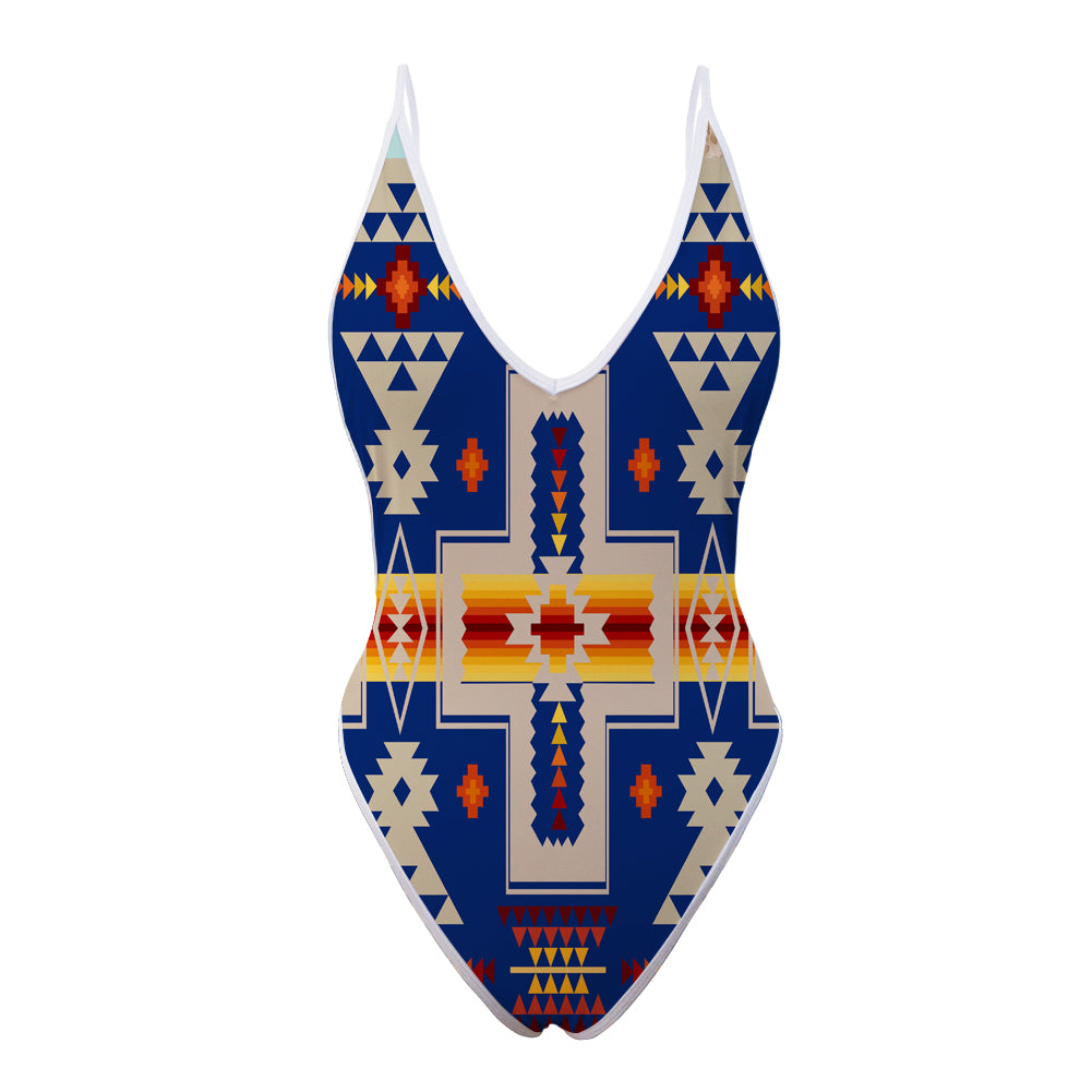 Navy Tribe Design Native American Women?s One Piece High Cut Swimsuit