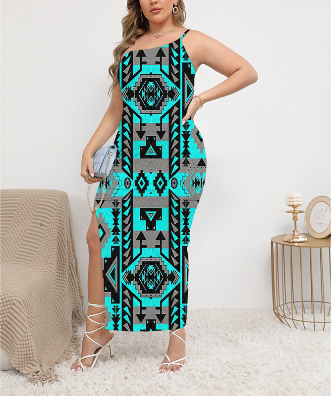 Side Split, sleeveless, single strap, oblique-shoulder exposure