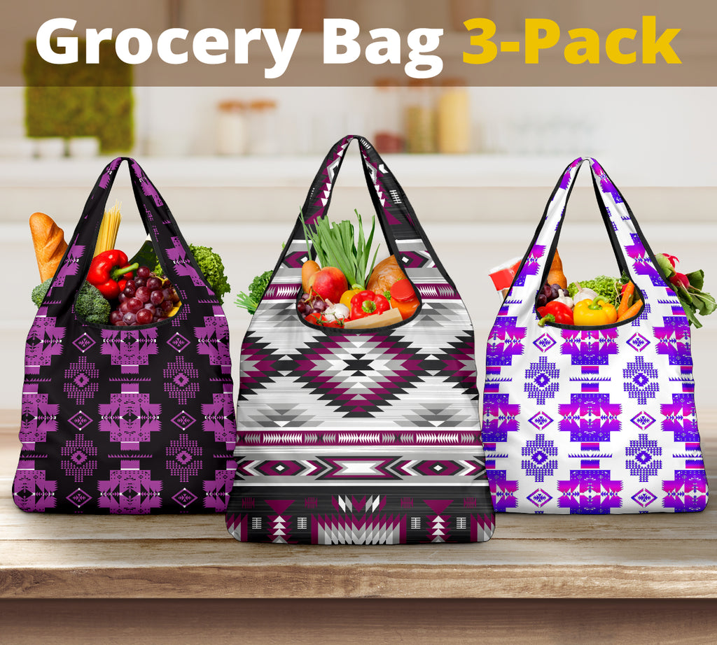 - Add style and personality to your grocery shopping routine with a 3-pack of custom printed grocery bags!