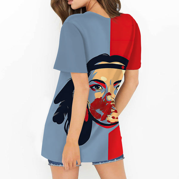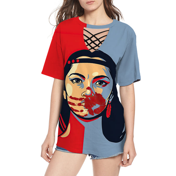 Red & Blue Girl Round Neck Hollow Out Tshirt