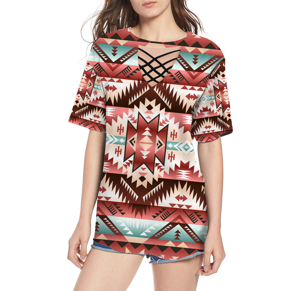 Red Vector Round Neck Hollow Out Tshirt