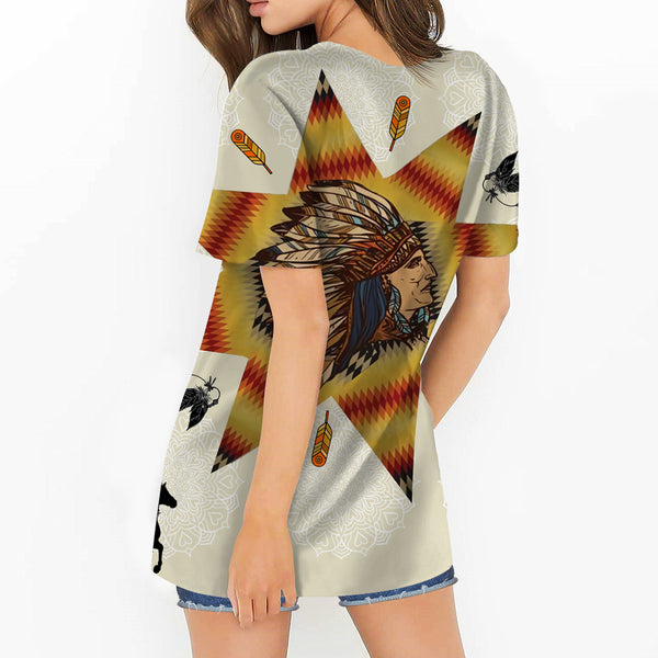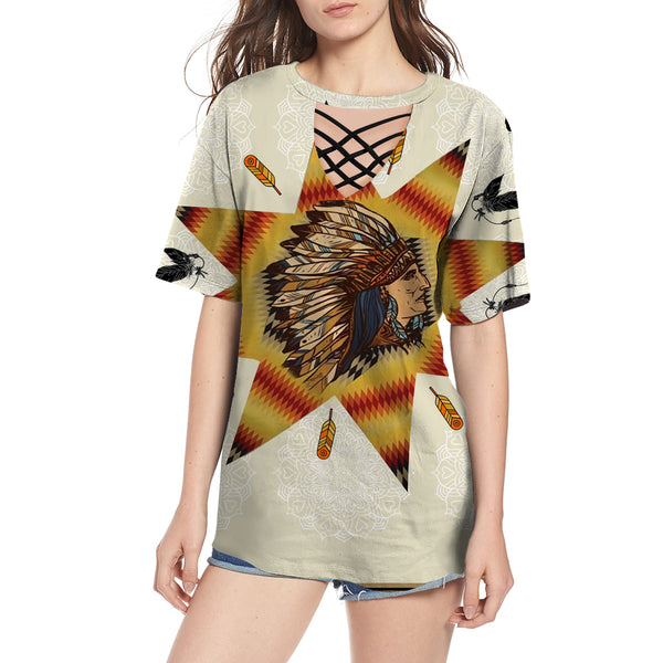Running Hourse Chief Native American Round Neck Hollow Out Tshirt