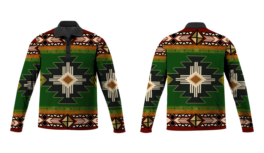 Be the first to review “Southwest Green Symbol Native American Polo Long Sleeve”