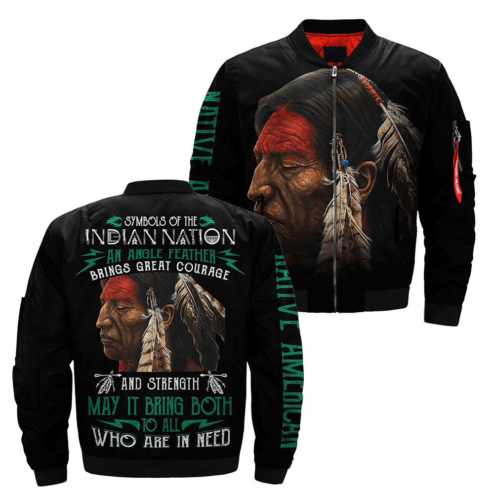 Be the first to review “Symbols Of The Indian Nation An Eagle Feather Brings Great Courage And Strength Bomber Jacket Native”
