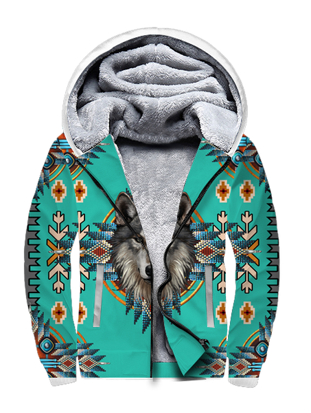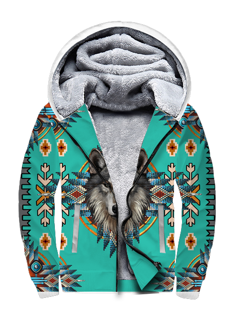 This Turquoise Tribe Wolf 3D Fleece Hoodie is a great wear for those who love outdoors. It features a classic, yet fun design of a wolf on the front and back.