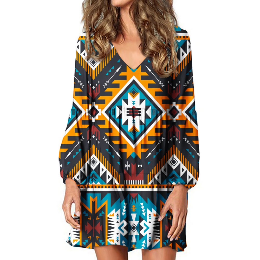 Be the first to review “Yellow Aztec Geometric Swing Dress”