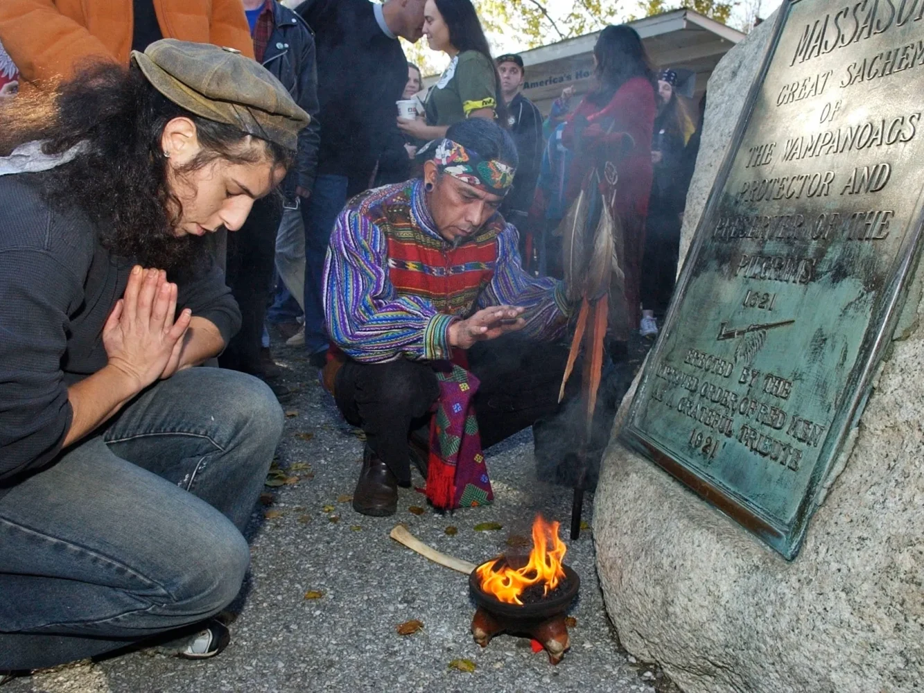 Today, the National Day of Mourning protest on Thanksgiving Day, now led by James’s son, Moonanum James, takes place on Cole’s Hill, not as a celebration of the Mayflower’s arrival, but as a solemn commemoration.